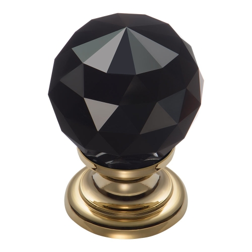 Ручка кнопка 9992-133, материал Замак Стекло, отделка Золото Стекло Черный, 42*d=30 мм